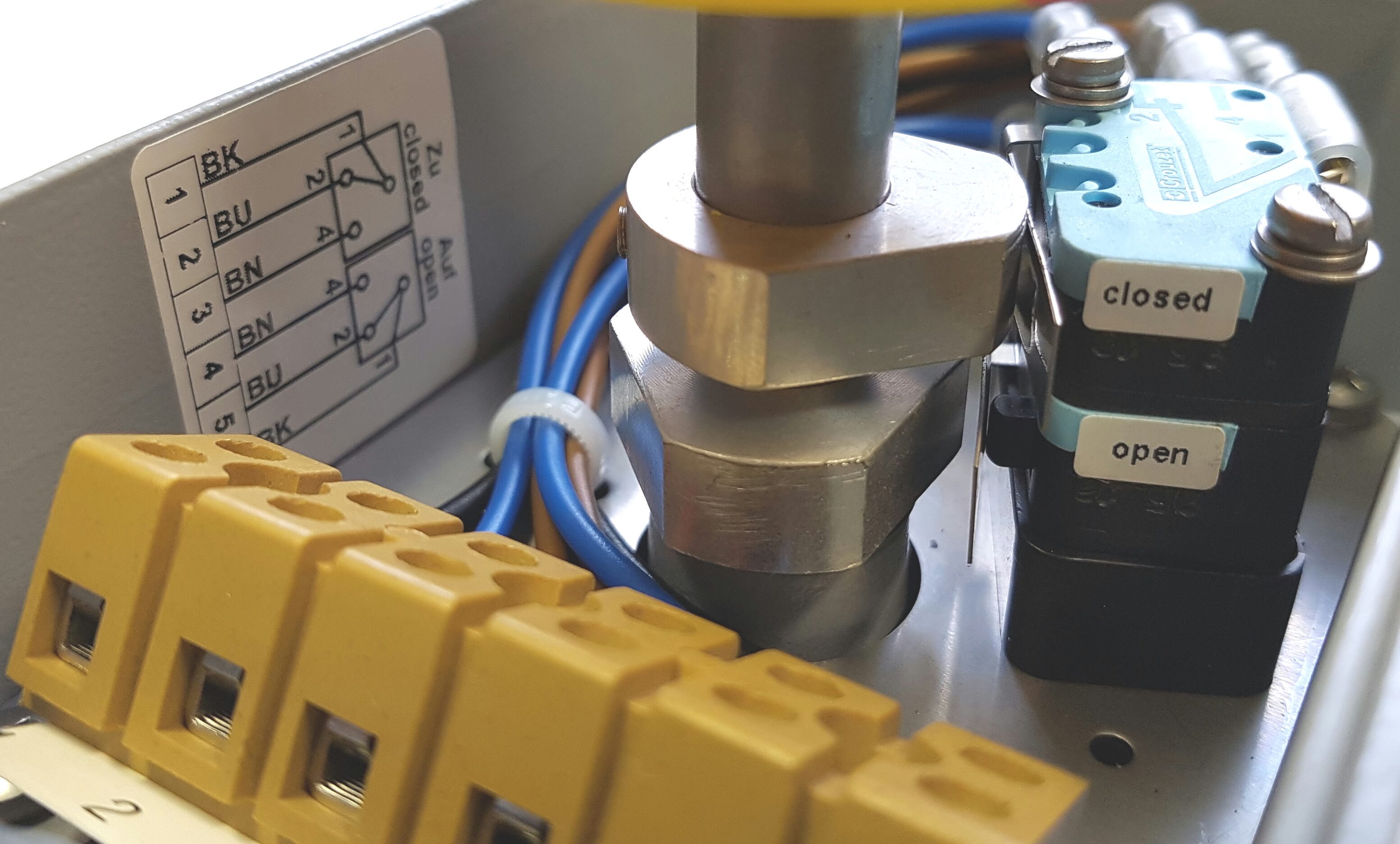 Diese Rückmeldeeinheit für Armaturen-Automation ist nach speziellen Kundenanforderungen für die Fa. ThyssenKrupp Steel Europe, Duisburg gefertigt.