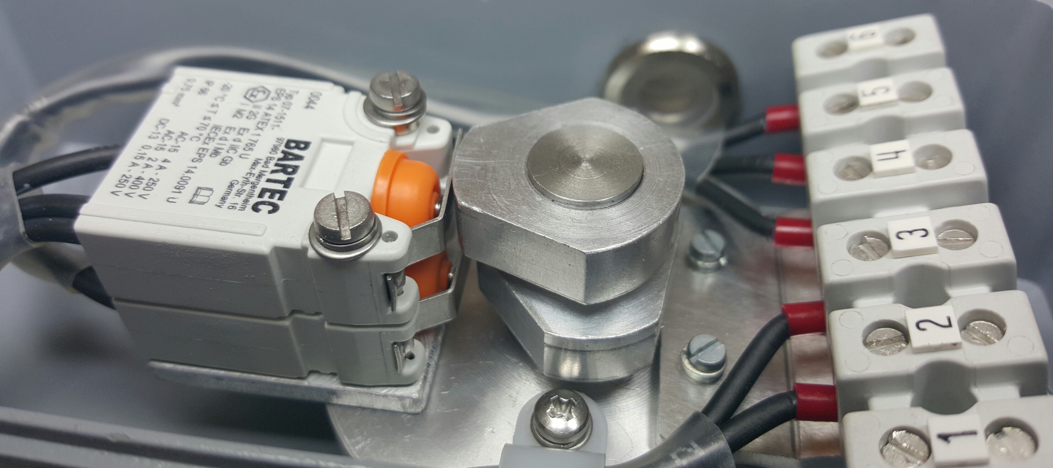 Dieser Positionsrückmelder zur Endlagenrückmeldung wurde nach speziellen Kundenanforderungen für die Fa. Hartmann Valves, Burgdorf gefertigt.